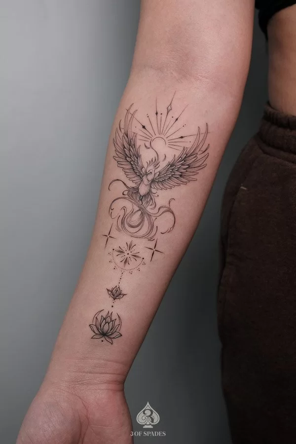 Raven is a 9 years experience tattoo artist at 3 of Spades Hanoi, specializing in fine line and minimal blackwork tattoos with soft storytelling and natural flow.