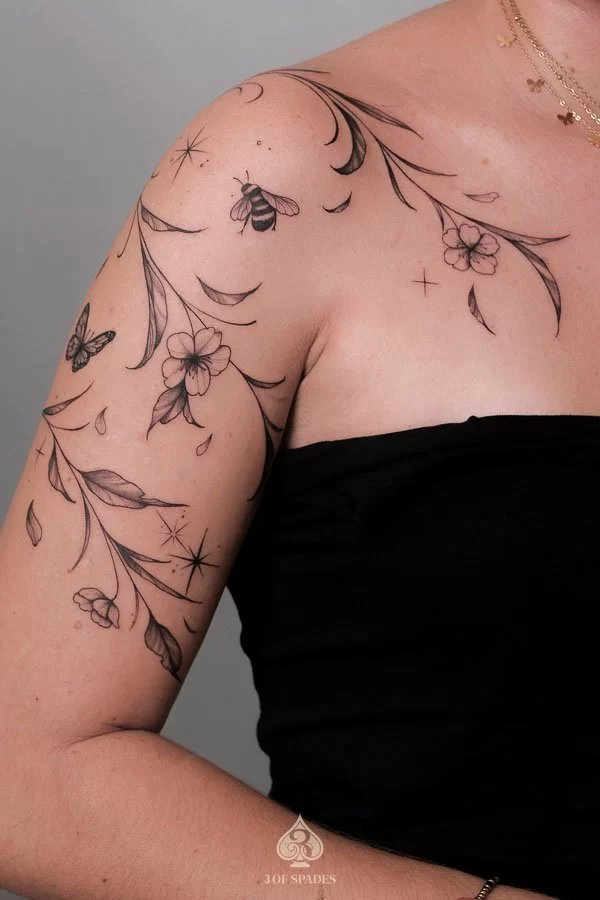 FINELINE, BLACKWORK, FLORAL
